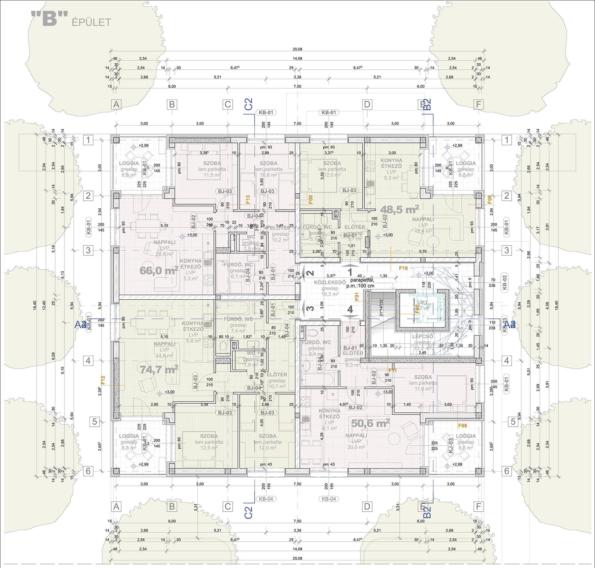 A Fésűs Park több ütemben épül, az épületek A-tól F-ig jelölve követik egymást a telken belül.
